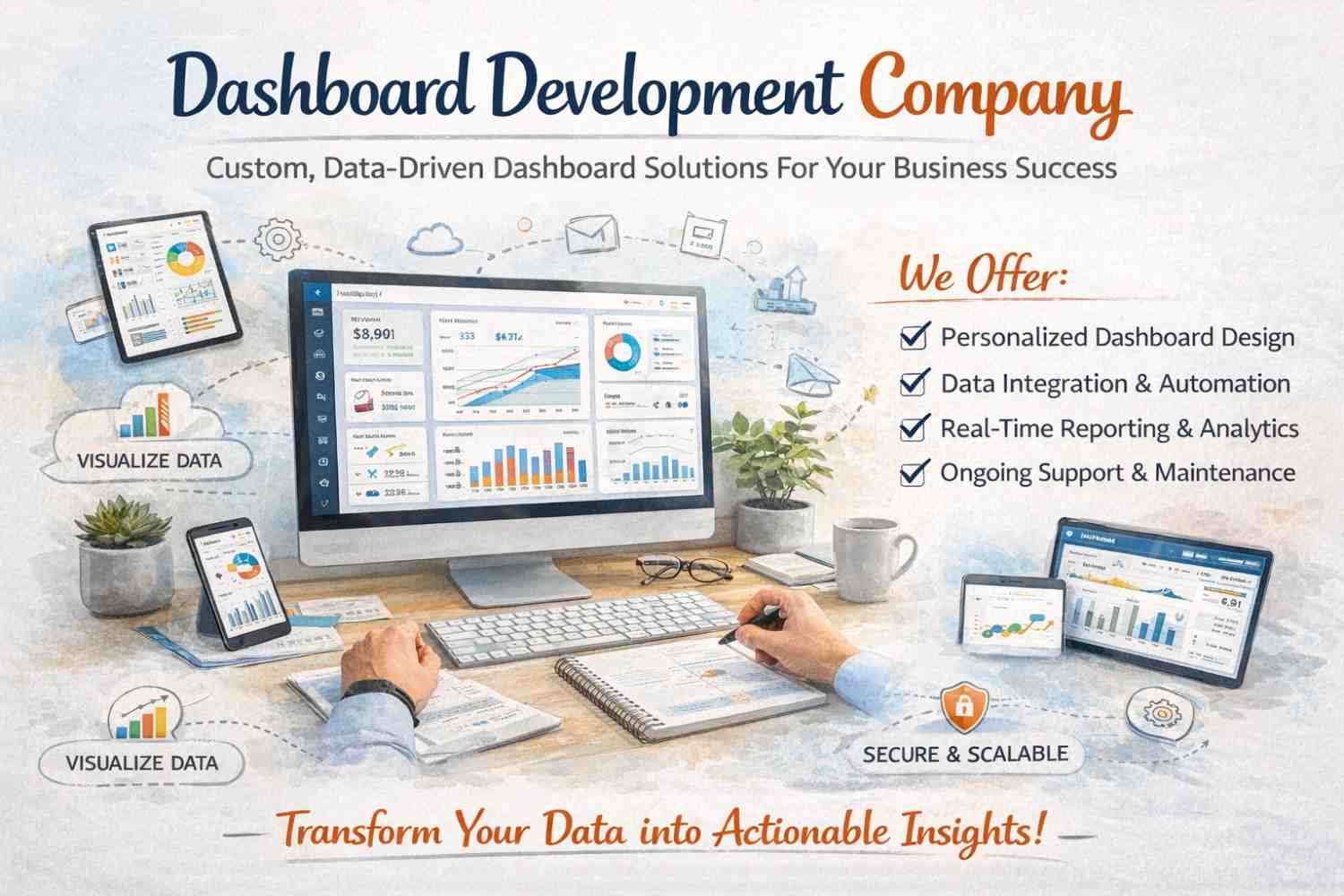 - We develop secure dashboards to keep your business data confidential