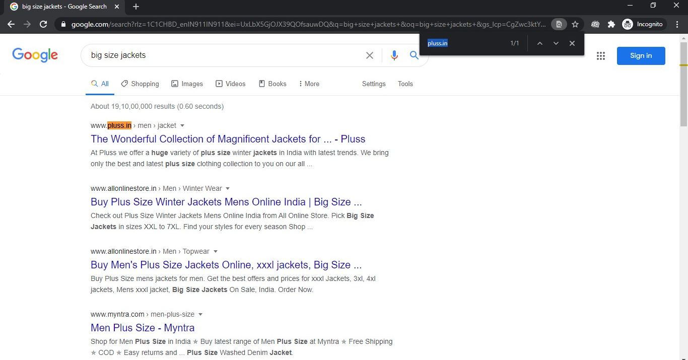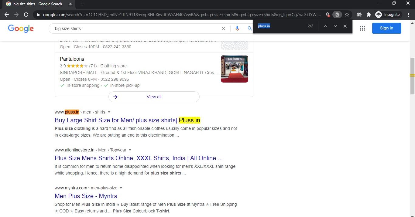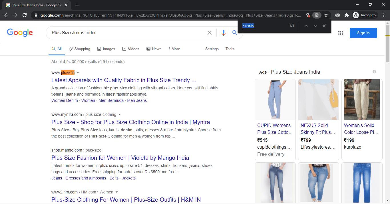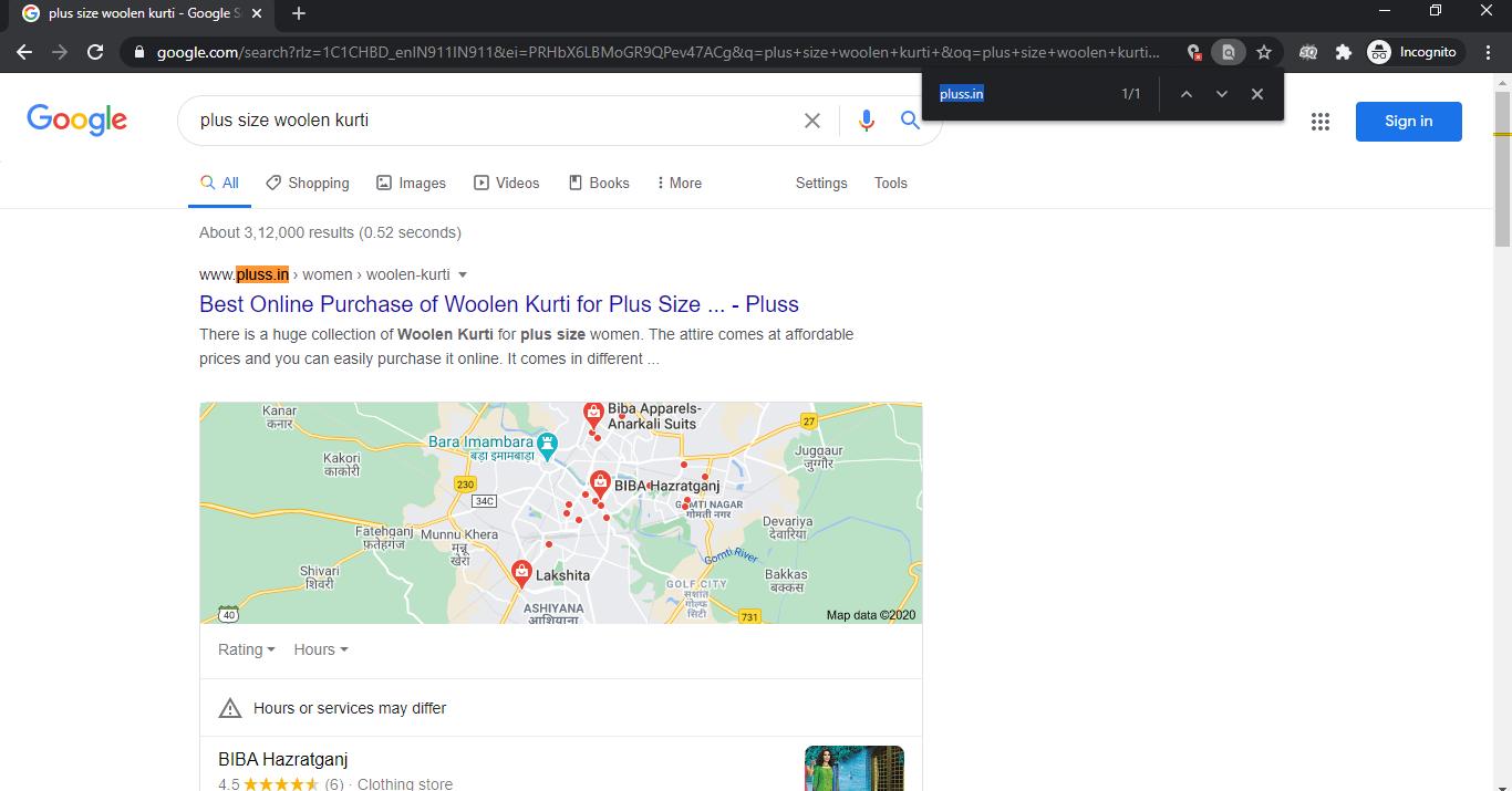 Image Source: Created for this article VI: Search ranking results of Pluss.in