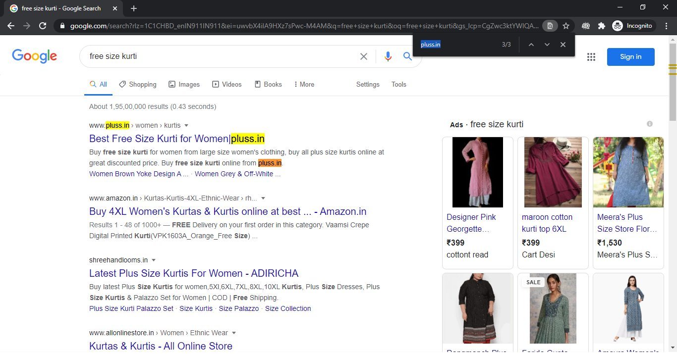 Image Source: Created for this article III: Search ranking results of Pluss.in